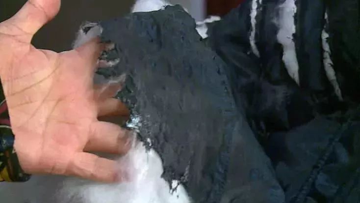 消防隊員介紹,如果這件羽絨服穿在人身上,接觸到含有油脂的皮膚,其燃燒速度可能會更快:“如果羽絨服穿在身上,著火了,人一跑動,產(chǎn)生風(fēng),也會加速衣服的燃燒速度?!?/span>