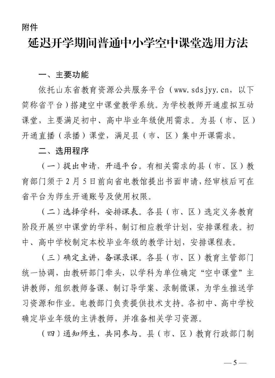 鼓勵(lì)各地和學(xué)校充分利用信息化技術(shù)、網(wǎng)絡(luò)資源和平臺,開展網(wǎng)絡(luò)教學(xué)、線上答疑等學(xué)業(yè)指導(dǎo),讓學(xué)生停課不停學(xué)。線上學(xué)業(yè)指導(dǎo)應(yīng)以學(xué)生自主學(xué)習(xí)為主、教師輔導(dǎo)答疑為輔。省教育廳已協(xié)調(diào)征集數(shù)字教材、“一師一優(yōu)課、一課一名師”等資源,在山東省教育云服務(wù)平臺建立線上學(xué)業(yè)指導(dǎo)參考資源庫。依托山東省教育資源公共服務(wù)平臺搭建起“空中課堂”,供各地假期自主選用。