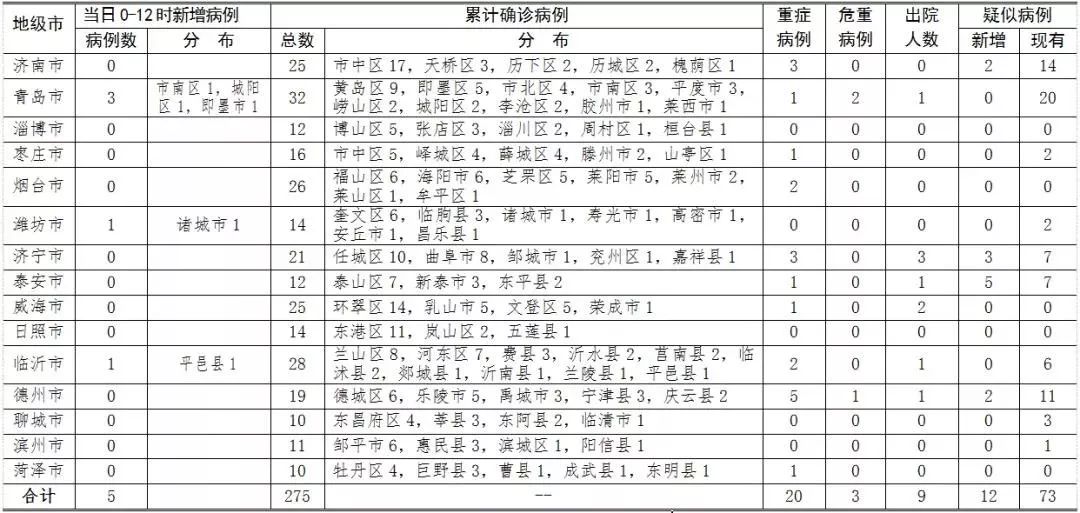 2月3日0—12時(shí),煙臺(tái)市新增4例新型冠狀病毒感染的肺炎確診病例。