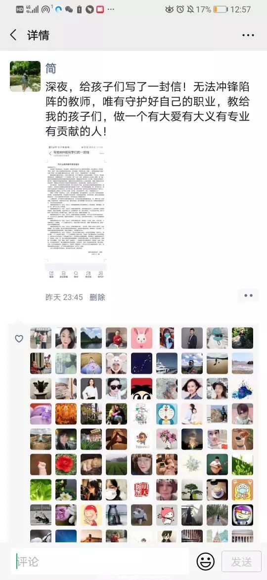 “字里行間都是老師對孩子滿滿的愛,這突然降臨的疫情是貼貼實實的教科書,孩子們吾輩當(dāng)自強!”