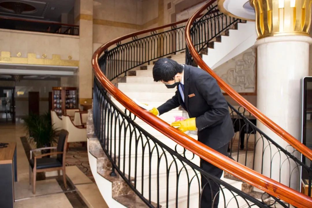 殺菌不僅針對酒店前臺、大堂、電梯、餐廳等公共區(qū)域,客房的家具、門窗把手、電話機(jī)、遙控器等能觸碰到的地方,也會消毒到位,確保您安心入住。