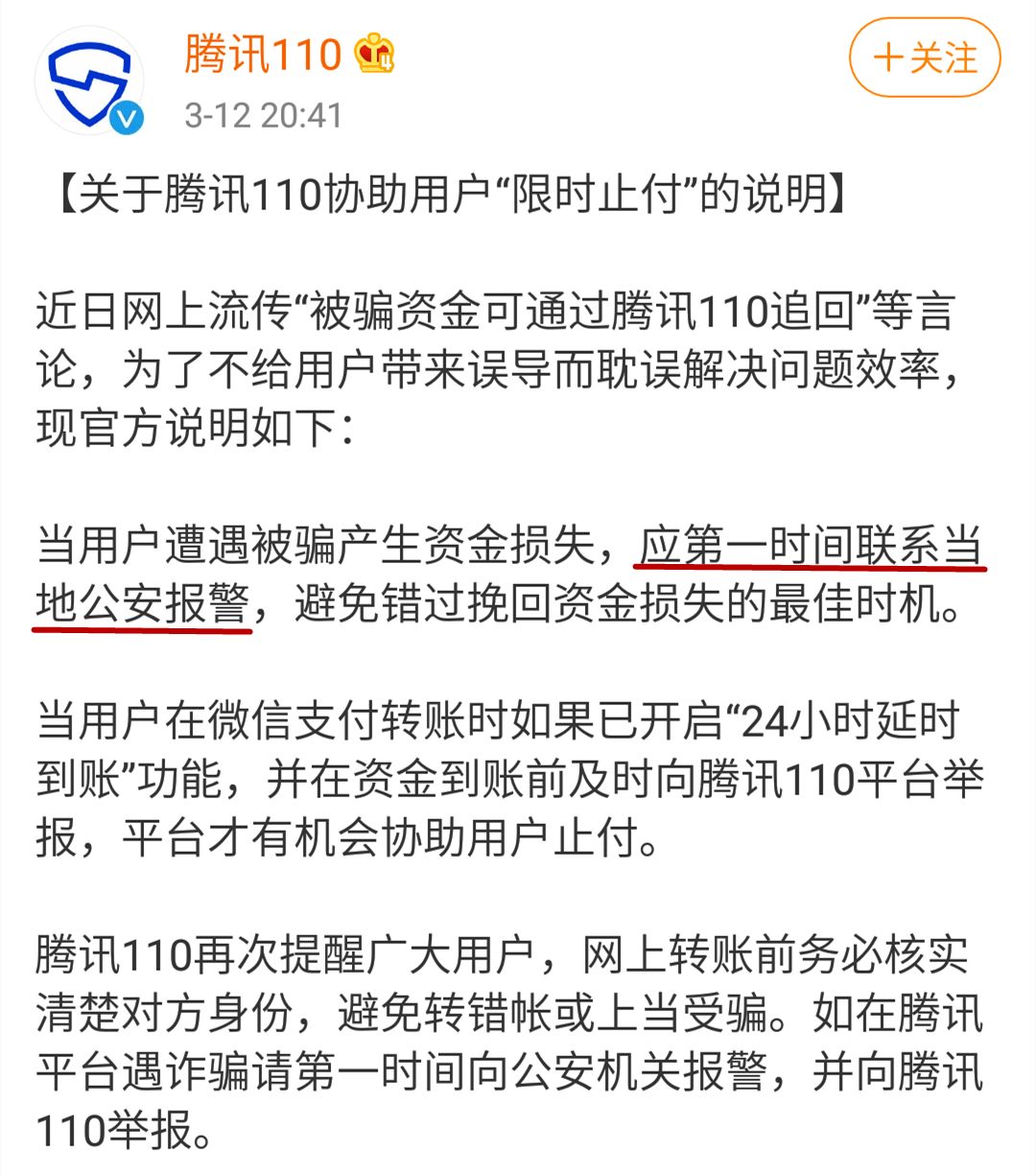 并在資金到賬前向騰訊110舉報,