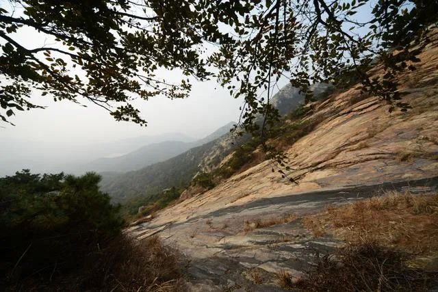 一塊碩大的巖石光滑潔凈地接受著大自然的風(fēng)化洗禮,依然一張?zhí)烊皇?,仰躺于山石之?聽(tīng)松風(fēng)、聞鳥(niǎo)鳴,愜意無(wú)窮。俯看傾斜的崖壁,色彩斑斕呈五顏六色般望不見(jiàn)底。暴雨過(guò)后這里肯定會(huì)呈現(xiàn)一道羅山里寬度最大的瀑布奇觀,似乎尚沒(méi)有人通過(guò)藝術(shù)的手法來(lái)記錄描繪這一奇觀,有點(diǎn)藏在深山無(wú)人識(shí)的遺憾。