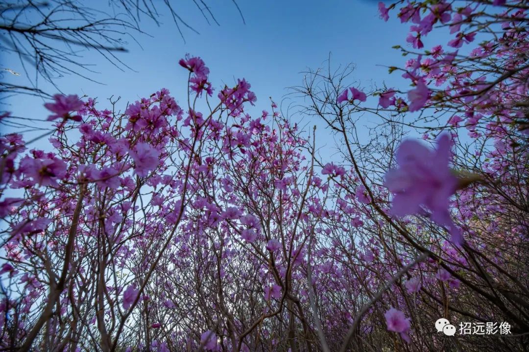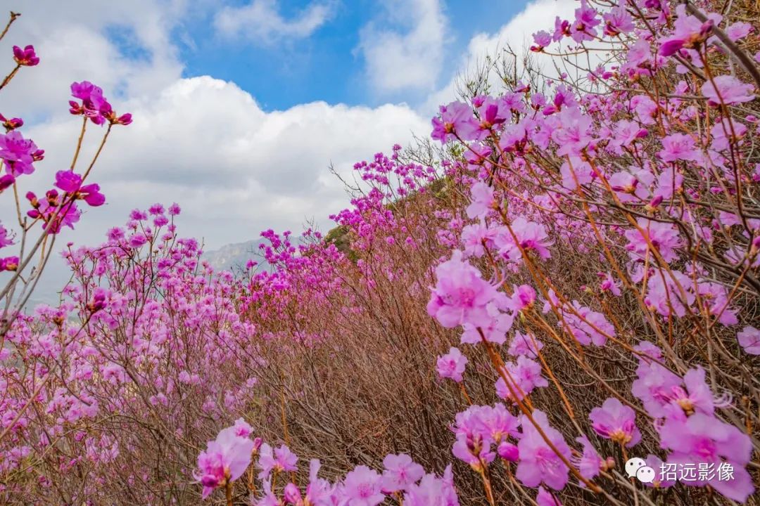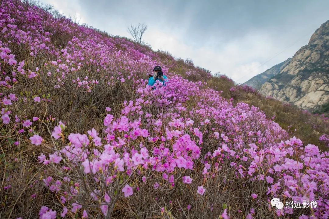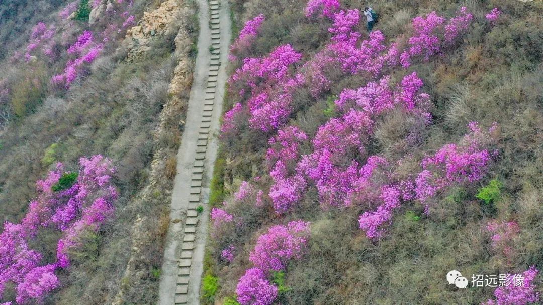 2020年春季雨水較多,在招遠(yuǎn)羅山上的野生映山紅長(zhǎng)勢(shì)旺盛,遠(yuǎn)遠(yuǎn)望去山野被紫紅盡染,在大山的襯托下,分外妖嬈。