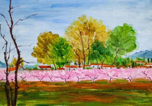 家在梨花落,旁有桃花海。