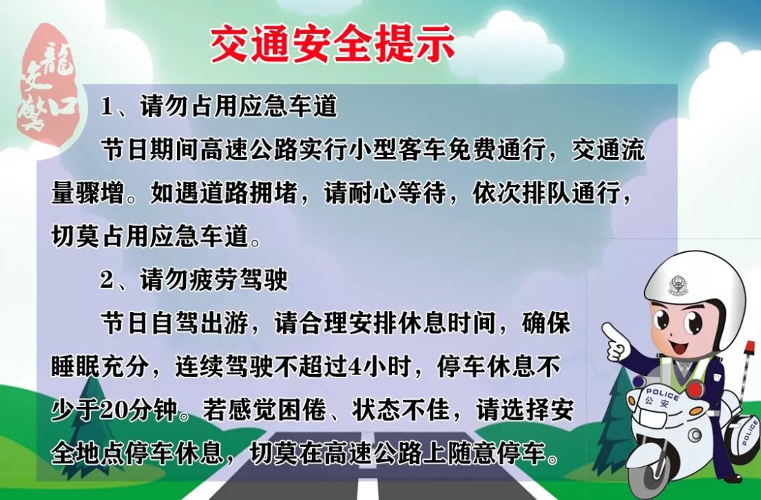敬請廣大機動車駕駛人減速慢行,不超速行駛、不強行超車、不占道停放,確保清明期間駕駛員朋友平平安安出行,安安全全行車