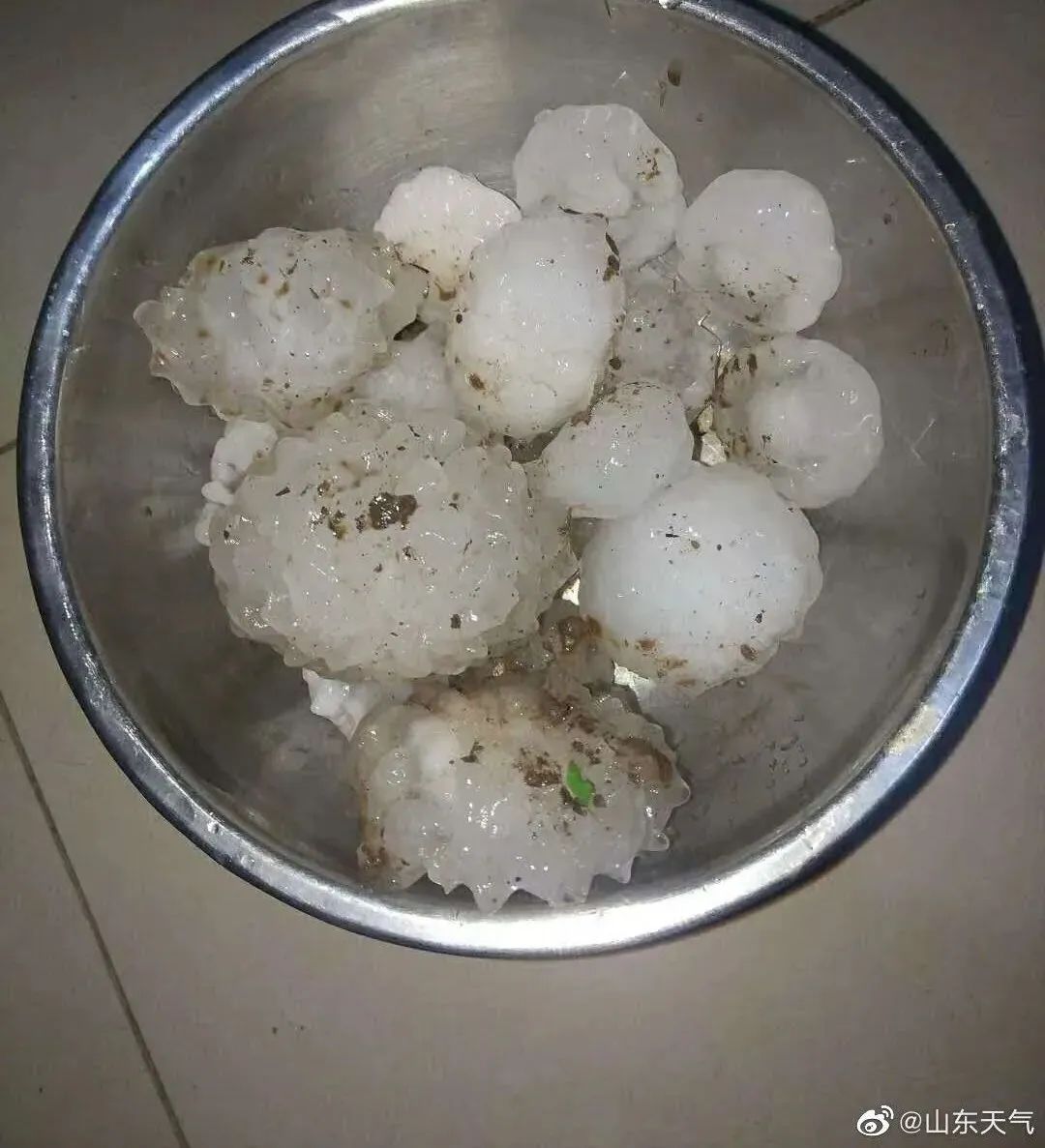 昨晚煙臺多地也降下冰雹,