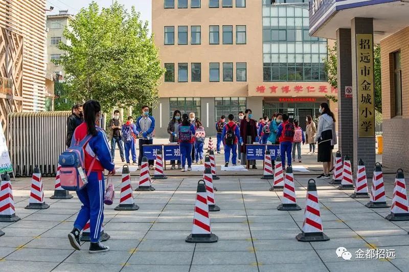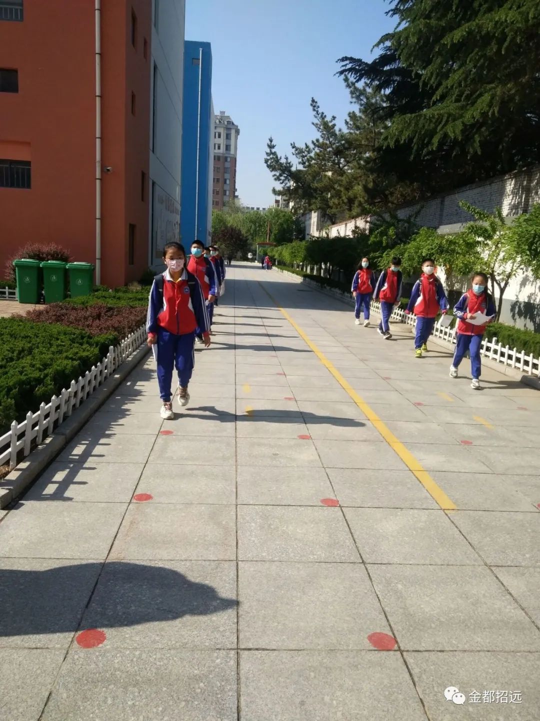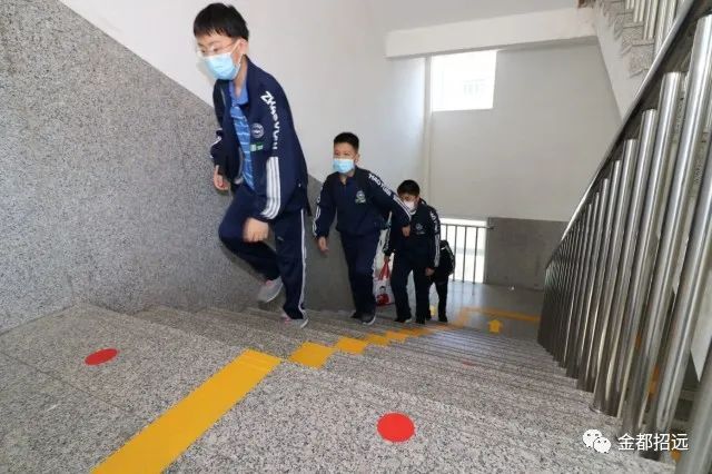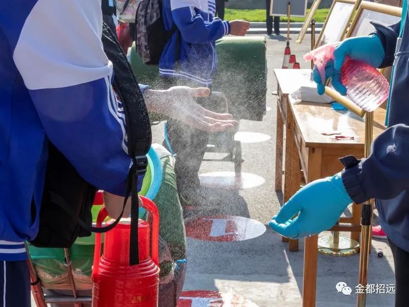 按照預(yù)定程序,學(xué)生在校門(mén)口按照學(xué)校劃定的距離和位置排隊(duì)入學(xué)。在工作人員引導(dǎo)下,按照指示牌逐一進(jìn)行消毒、測(cè)溫。測(cè)溫合格的學(xué)生按照學(xué)校指定路線,進(jìn)入教學(xué)樓,在教室門(mén)口二次測(cè)溫合格后,進(jìn)入教室坐到指定的座位。