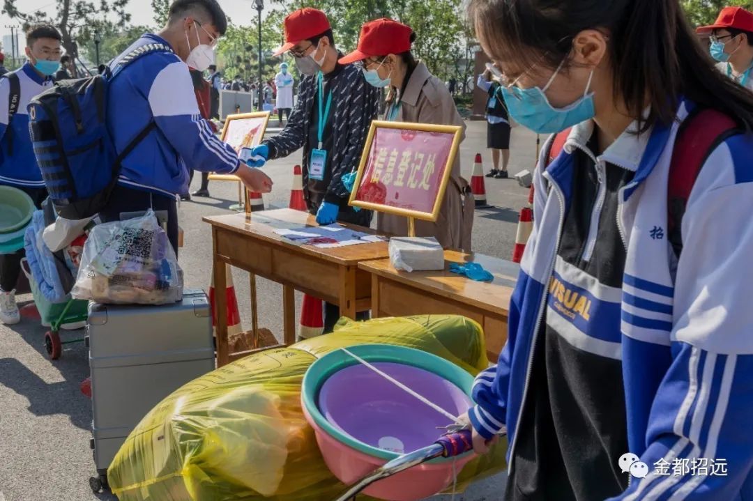 確認(rèn)體溫正常,口罩佩戴正確,消毒到位后方能進(jìn)入校園。看著學(xué)生順利入學(xué)的背影,老師們不禁感慨:所有的花開(kāi),終不負(fù)等待。幾經(jīng)推敲,幾易方案,多次培訓(xùn)和演練,多少艱辛和努力都是值得的。