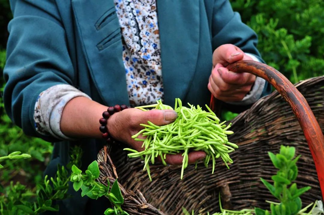 金銀花的采摘是極為耐心細致的工作,要一根一根分批采摘,耗時長,易疲勞,掌握正確采摘方法十分重要。正確的采摘方法是:在花蕾尚未開放之前,先外圍后內(nèi)膛,自下而上采摘。這樣采摘,不僅采摘速度快,而且采摘的干凈,不容易漏采而使花開放,影響產(chǎn)量與質(zhì)量。