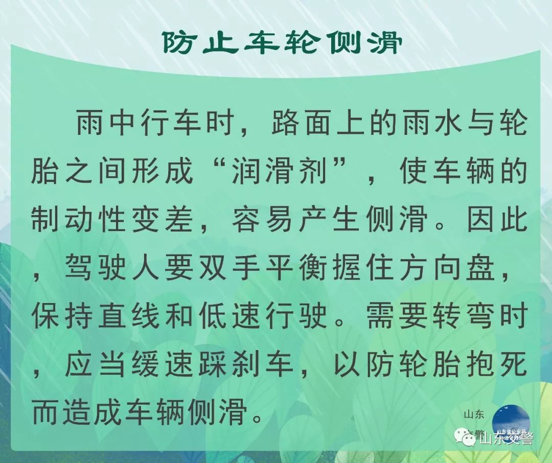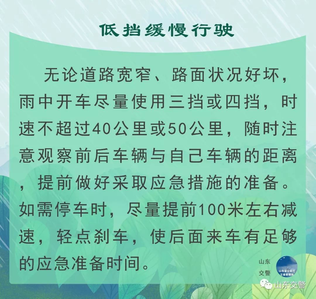 今日,我市迎來一輪降雨天氣,在此招遠(yuǎn)交警特意提示大家,雨天出行,請(qǐng)注意交通安全。若遇極端的惡劣天氣,存在很多交通安全和健康隱患,市民應(yīng)以防范為主,盡量避免外出。如果一定要外出,應(yīng)注意以下出行事項(xiàng):