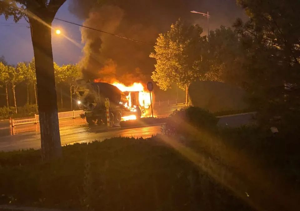 7月19日晚,招遠(yuǎn)西外環(huán),城西宋家村南300米處一運(yùn)送水泥的攪拌車疑似線路老化失火,現(xiàn)場(chǎng)濃煙滾滾,火光極大,來(lái)往車輛紛紛避讓!