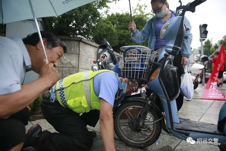雖然下雨,但是行經(jīng)的電動(dòng)自行車駕駛?cè)丝吹饺绱朔奖悖阃O萝囘M(jìn)行登記辦理;有的群眾專門到家里騎電動(dòng)車過來掛牌。為了加快辦理速度,民警不顧地面潮濕,累了坐著掛,找不到架號(hào)跪著找,民警的熱情服務(wù)受到了群眾的一致好評(píng),許多群眾自發(fā)為民警打傘遮雨。