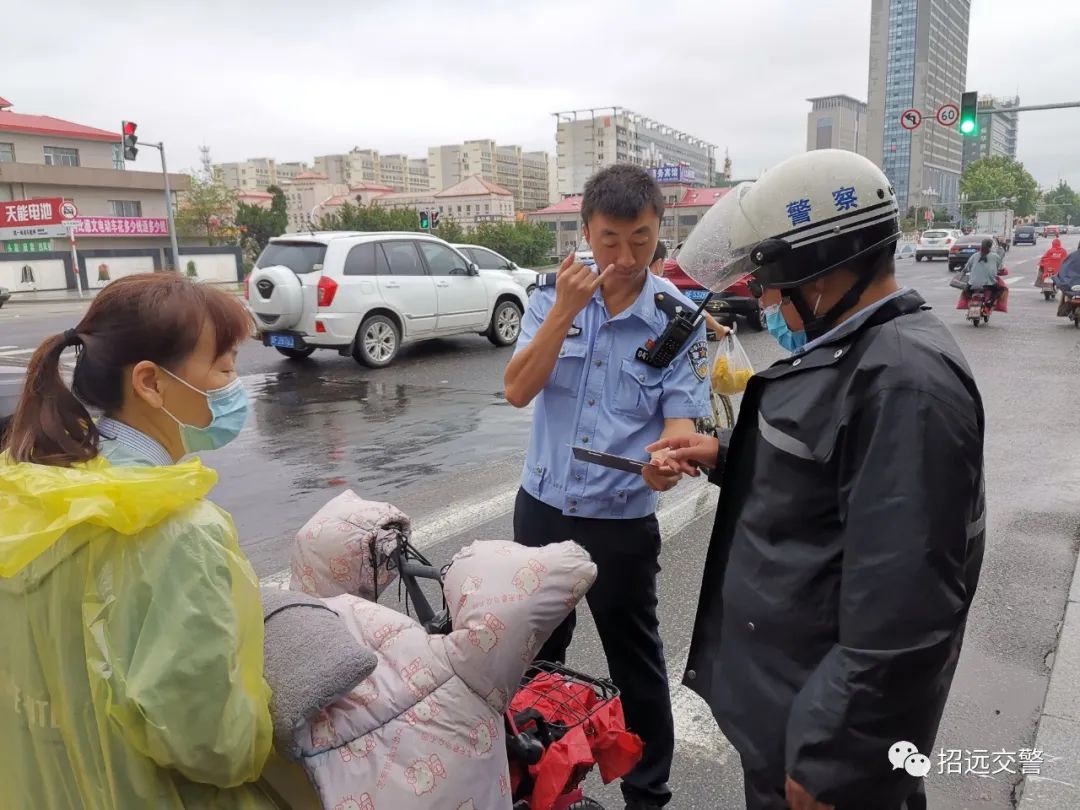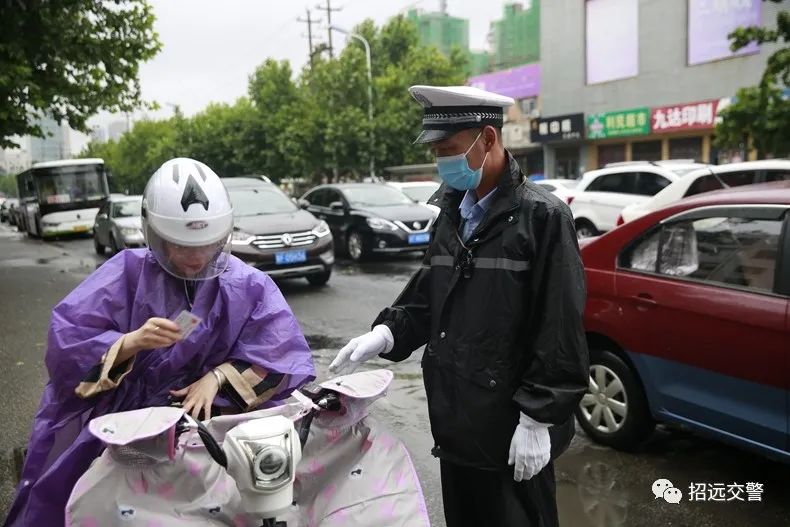 7月22夜間到23日上午,全市普降中到大雨,招遠(yuǎn)交警全力加強(qiáng)降雨天道路交通管控,指揮疏導(dǎo)交通,勸導(dǎo)電動(dòng)自行車使用雨披妨礙安全駕駛等違法行為,全力保障道路安全暢通。
