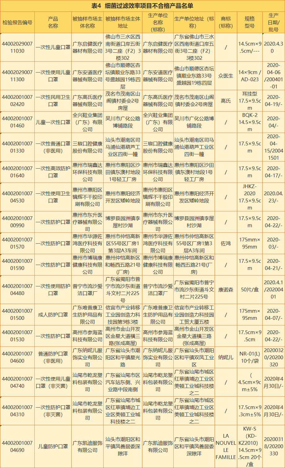 對于這次不合格口罩產(chǎn)品