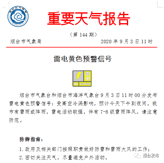發(fā)布雷電黃色預(yù)警信號(hào)!