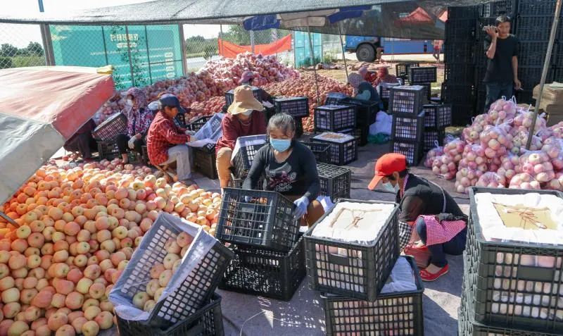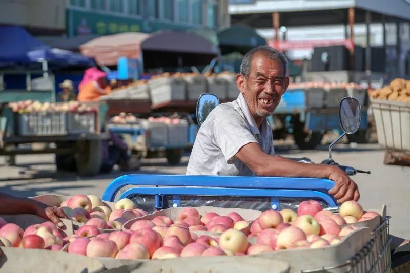 拍攝于招遠(yuǎn)市畢郭鎮(zhèn)蘋果交易市場(chǎng),經(jīng)過(guò)采摘、分揀、裝車,滿載蘋果的大車緩緩駛出市場(chǎng),招遠(yuǎn)的蘋果奔向全國(guó)各地……