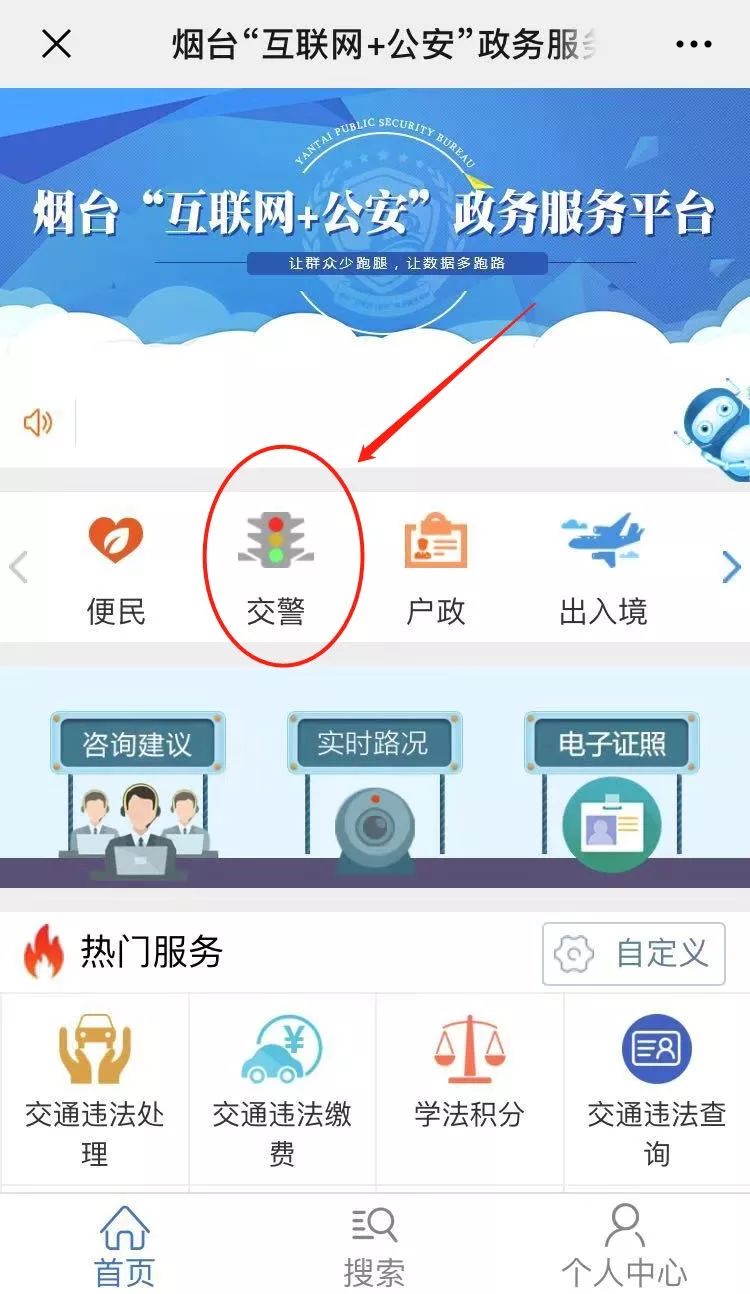 ⑴打開“煙臺交警”或“煙臺公安”微信公眾號。