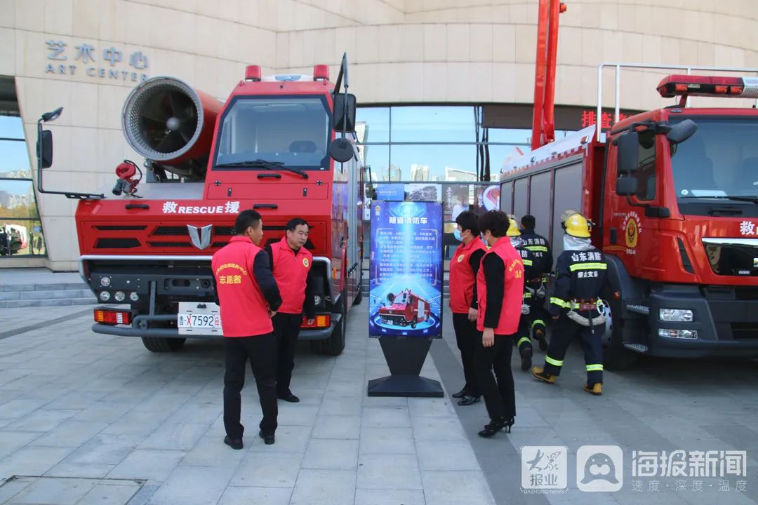 金太陽消防志愿服務(wù)隊的志愿者們在儀式現(xiàn)場參觀體驗了煙臺消防授旗訓(xùn)詞兩周年大事記展覽區(qū)、“消防小鎮(zhèn)”網(wǎng)紅打卡區(qū)、消防車輛器材裝備展示區(qū)、消防主題創(chuàng)意集市區(qū)等多個區(qū)域,通過現(xiàn)場觀摩、體驗等方式,零距離學(xué)習(xí)消防、了解消防、參與消防。