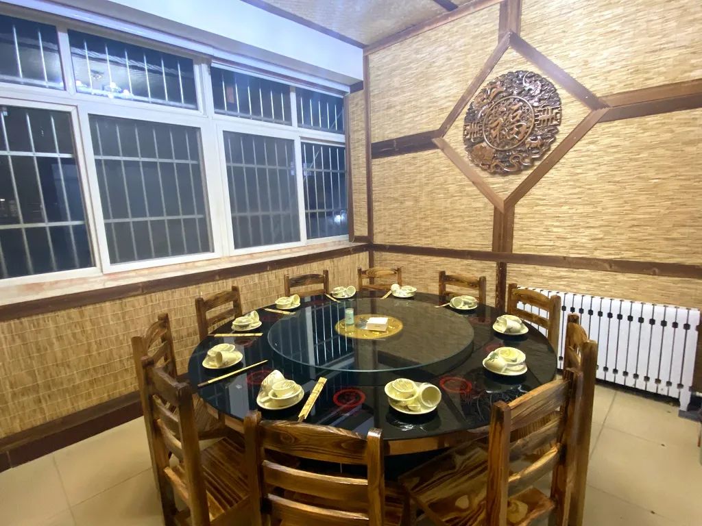 墻上的裝飾也是用心了,精心雕刻的“福”字,別致的中式復(fù)古窗,精致的吊燈,花不少錢(qián)吧!共設(shè)兩個(gè)包間,滿足12人左右聚餐把酒言歡!