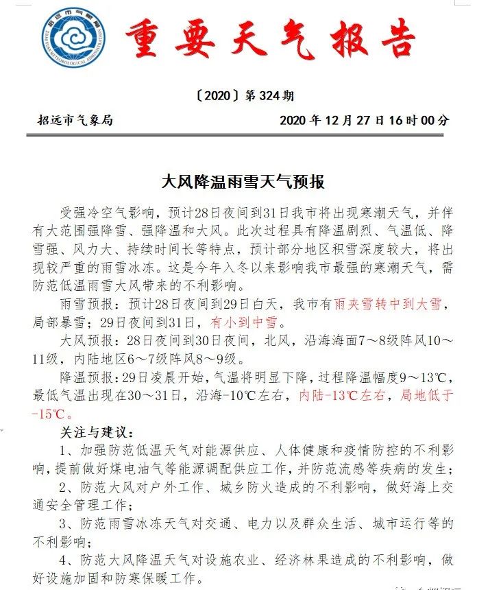 針對(duì)寒潮天氣,省政府安委辦發(fā)布重要提示: