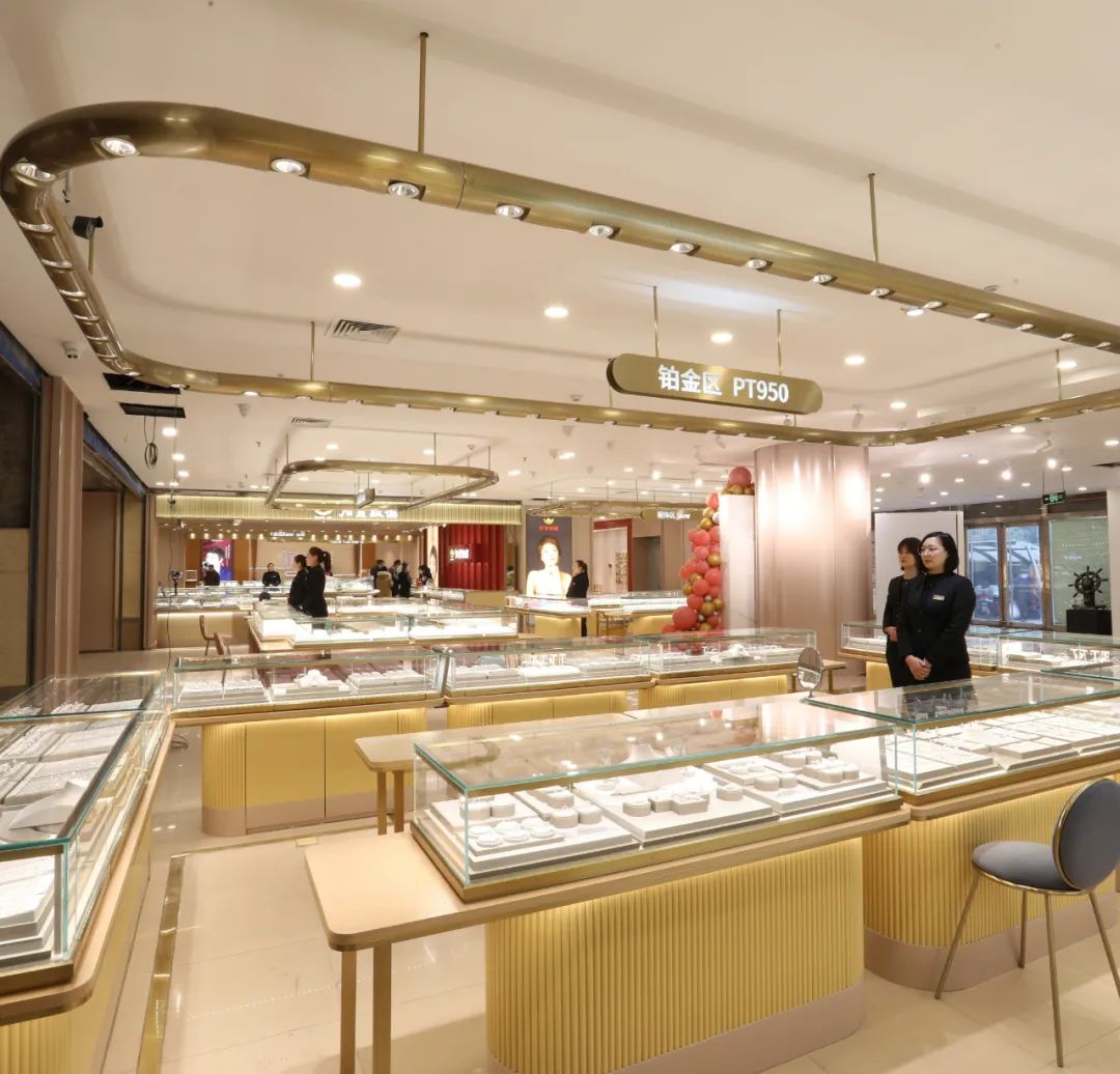 從黃金飾品,到覆蓋全品類珠寶產(chǎn)品;從滿足顧客個(gè)別需求,到覆蓋顧客需求的方方面面,招金銀樓合理的規(guī)劃了商品分類區(qū)域,打造黃金區(qū)、K金區(qū)、鉆石區(qū)、兒童區(qū)、銀飾區(qū)、鉑金區(qū)、高端區(qū)、悅古金區(qū)、投資區(qū)、婚慶區(qū)、硬金區(qū)、編織區(qū)、打卡區(qū)共13個(gè)區(qū)域,給顧客最直觀的展示。1300平方米的店鋪空間布局主次分明,既能展現(xiàn)全部產(chǎn)品,又凸顯重點(diǎn)產(chǎn)品,做到了整體店面的協(xié)調(diào)性與專業(yè)性。