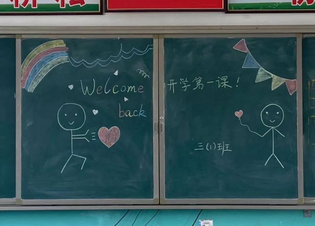 ● 開(kāi)學(xué)了,菏澤高新區(qū)馬嶺崗鎮(zhèn)中心小學(xué)教師們?yōu)榉敌5暮⒆觽兙睦L制了一幅幅活潑可愛(ài)的黑板畫,展現(xiàn)出他們對(duì)學(xué)生們濃濃的愛(ài),也把久別重逢的喜悅詮釋的淋漓盡致。
