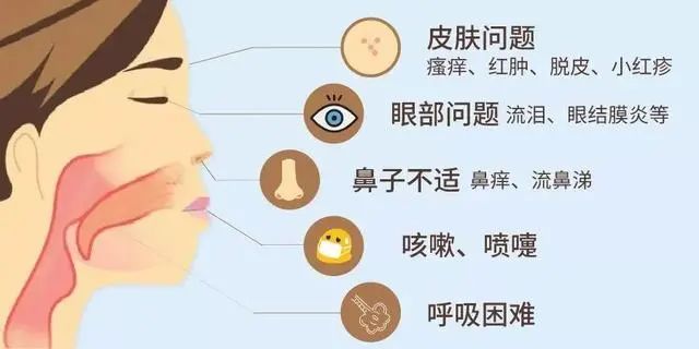 眼部和耳部癥狀,包括眼癢、流淚、眼紅和灼熱感、外耳道癢等;
