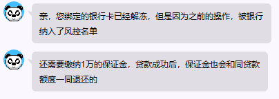 馬某繳納完5000元的解凍費(fèi)后,客服再次聯(lián)系馬某,稱其綁定的銀行卡已經(jīng)解凍,但是因?yàn)橹暗牟僮鳎汇y行納入了風(fēng)控名單,因此,還需要繳納1萬的保證金,才能貸到款。