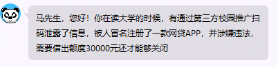 市民馬某收到一條貸款短信?!拔⒘YJ青春版”APP?經(jīng)常網(wǎng)購的小馬心想:“微粒貸,挺出名的!”急需用錢的他來不及多想,便按指南下載APP并填寫資料,申請(qǐng)貸款1萬元。