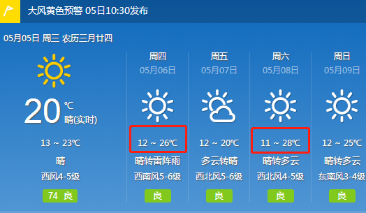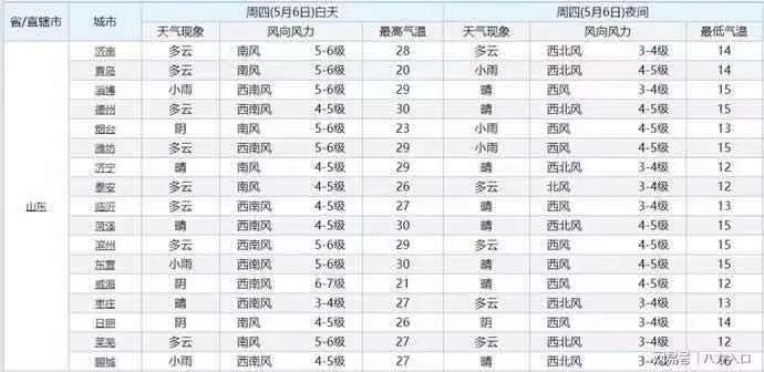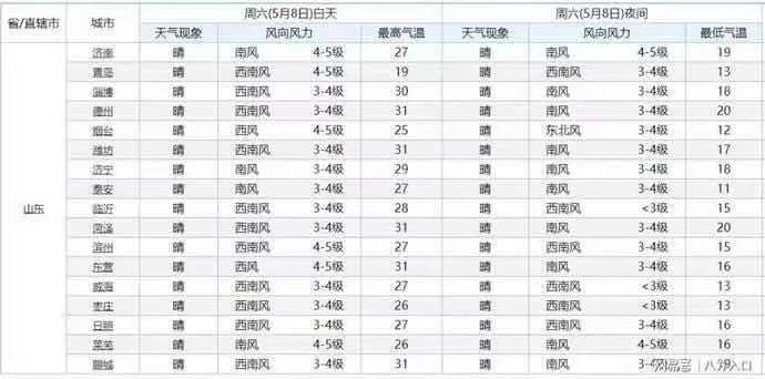 從山東省氣象局最新更新的天氣預報來看,今天山東大部的降水將逐漸結束,大部將逐漸轉為多云或晴天。 在未來的5天時間里,山東大部將持續(xù)出現(xiàn)大面積的晴或多云天氣,在此期間山東的氣溫在略有起伏中,整體呈現(xiàn)出上升的趨勢。山東的下一場氣溫“大轉折”將出現(xiàn)在5月6日,這一天山東的氣溫將重新邁上30度線,預計在5月8日到9日,山東將有更多的地方最高氣溫達到或超過30度,其中,德州,菏澤,東營等地的最高氣溫將率先邁上30度線,局部最高氣溫將升至34度。 煙臺溫度相對適宜,5月6日,南風5-6級,最高氣溫23度,最低氣溫13度。招遠5月8日,最高溫度將達到28度。 預計到了5月8日,山東主要城市中,淄博,德州,濰坊,菏澤,東營,聊城等地的最高氣溫將升至30度到31度。煙臺溫度25度。 預計到了5月9日,濟南,淄博,德州,濰坊,濟寧,臨沂,菏澤,東營,萊蕪,聊城等地的最高氣溫將達到或超過30度,其中,德州,聊城,菏澤的最高氣溫將升至34度。煙臺溫度維持在22度左右。 今年天氣比較反常