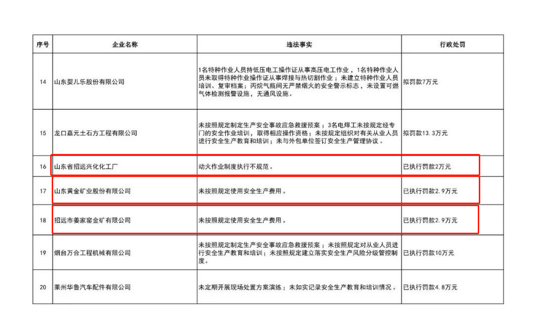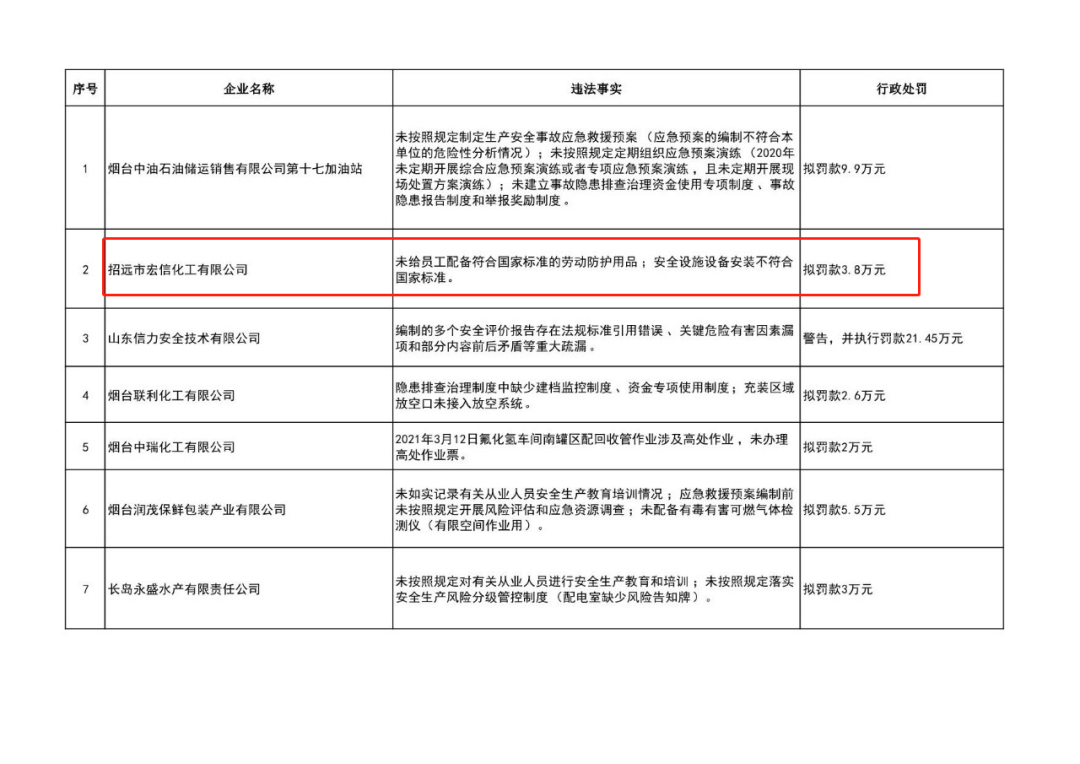 為深入推進(jìn)全市安全生產(chǎn)大排查大整治行動(dòng),推動(dòng)各類事故隱患徹底整改,從源頭上防范和遏制事故發(fā)生,保障人民群眾生命財(cái)產(chǎn)安全,煙臺(tái)市應(yīng)急管理部門不斷加大安全生產(chǎn)執(zhí)法檢查和處罰力度,近日,向20家企業(yè)開出了高額罰單,罰款數(shù)額都在2萬元以上,最高達(dá)21.45萬元!