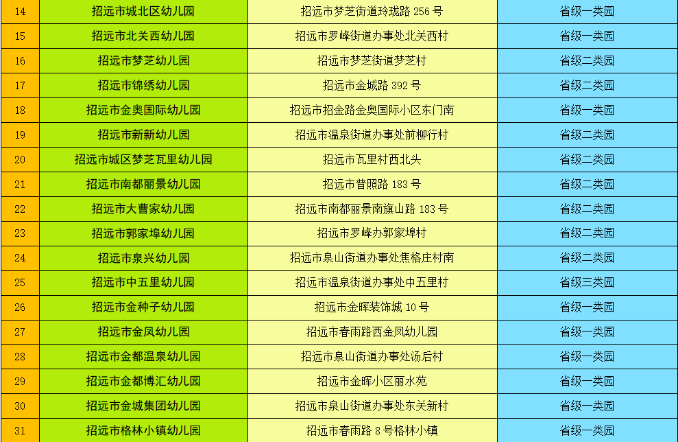 招遠(yuǎn)市幼兒園白名單