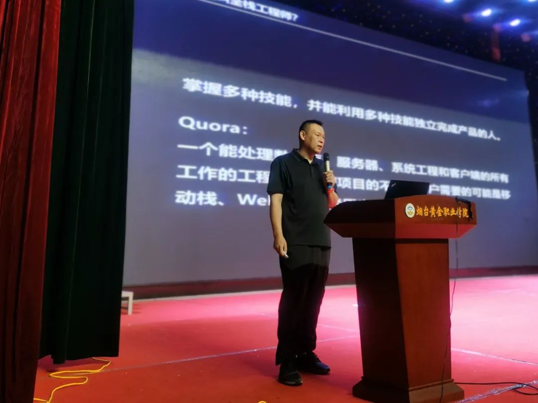 為更好地回饋社會(huì),幫助學(xué)子更好地將課程理論與實(shí)操技能相結(jié)合,強(qiáng)化活動(dòng)能力,6月30日上午,煙臺(tái)艾特信息技術(shù)有限公司技術(shù)總監(jiān)徐剛應(yīng)邀,來到煙臺(tái)黃金職業(yè)學(xué)院大會(huì)堂,進(jìn)行了題為《全棧工程師的自我修養(yǎng)》專題授課。學(xué)院計(jì)算機(jī)系學(xué)生500余人參加了本次課程。
