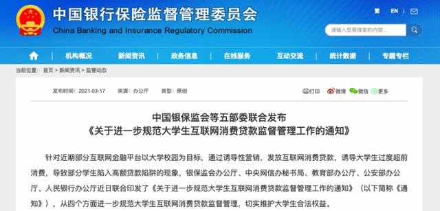 全宇宙只有不到1%的人點(diǎn)擊上方進(jìn)入招遠(yuǎn)信息港你真是個特別的人近日,銀保監(jiān)會等五部委聯(lián)合發(fā)布《關(guān)于進(jìn)一步規(guī)范大學(xué)生互聯(lián)網(wǎng)消費(fèi)貸款監(jiān)督管理工作的通知》,進(jìn)一步規(guī)范大學(xué)生互聯(lián)網(wǎng)消費(fèi)貸款監(jiān)督管理,切實(shí)維護(hù)大學(xué)