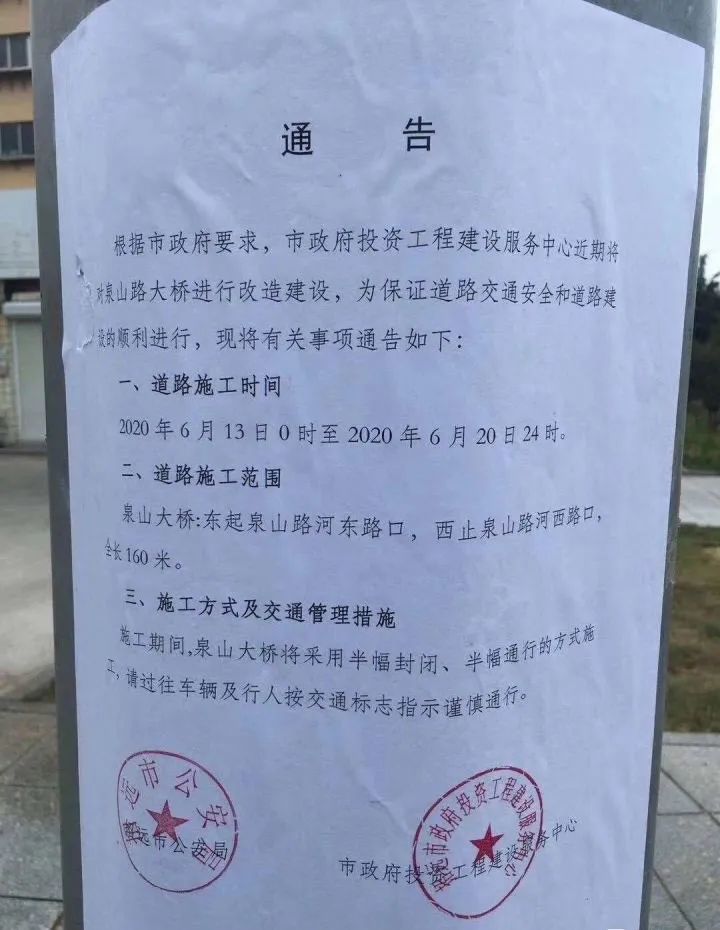 全宇宙只有不到1%的人點(diǎn)擊上方進(jìn)入招遠(yuǎn)信息港你真是個(gè)特別的人通告根據(jù)政府要求,市政府投資工程建設(shè)服務(wù)中心近期將對(duì)泉山路大橋進(jìn)行改造建設(shè),為保證道路交通安全和道路建設(shè)的順利進(jìn)行,現(xiàn)將有關(guān)事項(xiàng)通告如下:一
