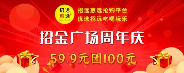 招金廣場1周年店慶!招金廣場1周年店慶!招金廣場1周年店慶!招金廣場1歲生日派對狂歡加倍超值HIGH玩!59.9元搶購100元代金券20+商家通用購買①點(diǎn)擊下方小程序可直接搶購每人限購兩張②關(guān)注招遠(yuǎn)惠