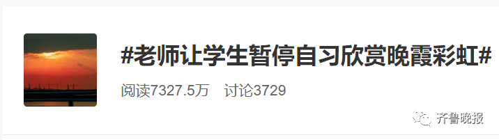 老師教授給學(xué)生的的不僅僅是知識(shí),還有對(duì)生活的熱愛。最近,濰坊一位老師的舉動(dòng),就讓網(wǎng)友們驚呼“浪漫又暖心”。6月17日,濰坊一位中學(xué)地理老師梁老師,在不經(jīng)意間發(fā)現(xiàn)天空中出現(xiàn)了東邊彩虹,西邊晚霞的美景,他