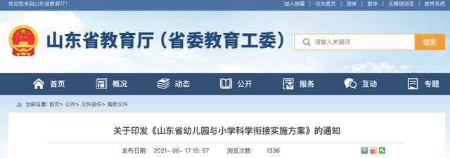 6月17日,山東省教育廳網(wǎng)站發(fā)布《關(guān)于印發(fā)山東省幼兒園與小學(xué)科學(xué)銜接實(shí)施方案的通知》,通過幼兒園大班下學(xué)期設(shè)立入學(xué)準(zhǔn)備期、一年級(jí)上學(xué)期設(shè)置為入學(xué)適應(yīng)期等方式,建立幼兒園與小學(xué)的科學(xué)銜接。2021年秋季