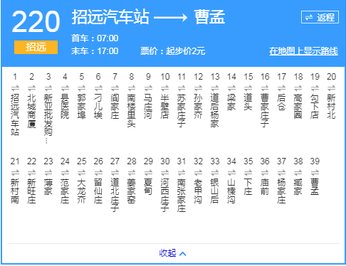 全宇宙只有不到1%的人點(diǎn)擊上方進(jìn)入招遠(yuǎn)信息港你真是個(gè)特別的人220路公交車(chē)連接招遠(yuǎn)市區(qū)與夏甸鎮(zhèn)的重要公共交通一個(gè)月前招遠(yuǎn)市交通運(yùn)輸局發(fā)布公告稱(chēng)因夏甸至曹孟路段道路施工故自8月17日起220路公交車(chē)輛將