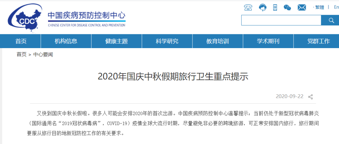 全宇宙只有不到1%的人點(diǎn)擊上方進(jìn)入招遠(yuǎn)信息港你真是個(gè)特別的人中疾控發(fā)布重要提示事關(guān)2020年國(guó)慶中秋假期旅行衛(wèi)生這種情況可能最長(zhǎng)隔離28天!全文如下:中國(guó)疾病預(yù)防控制中心溫馨提示:當(dāng)前仍處于新型冠狀病