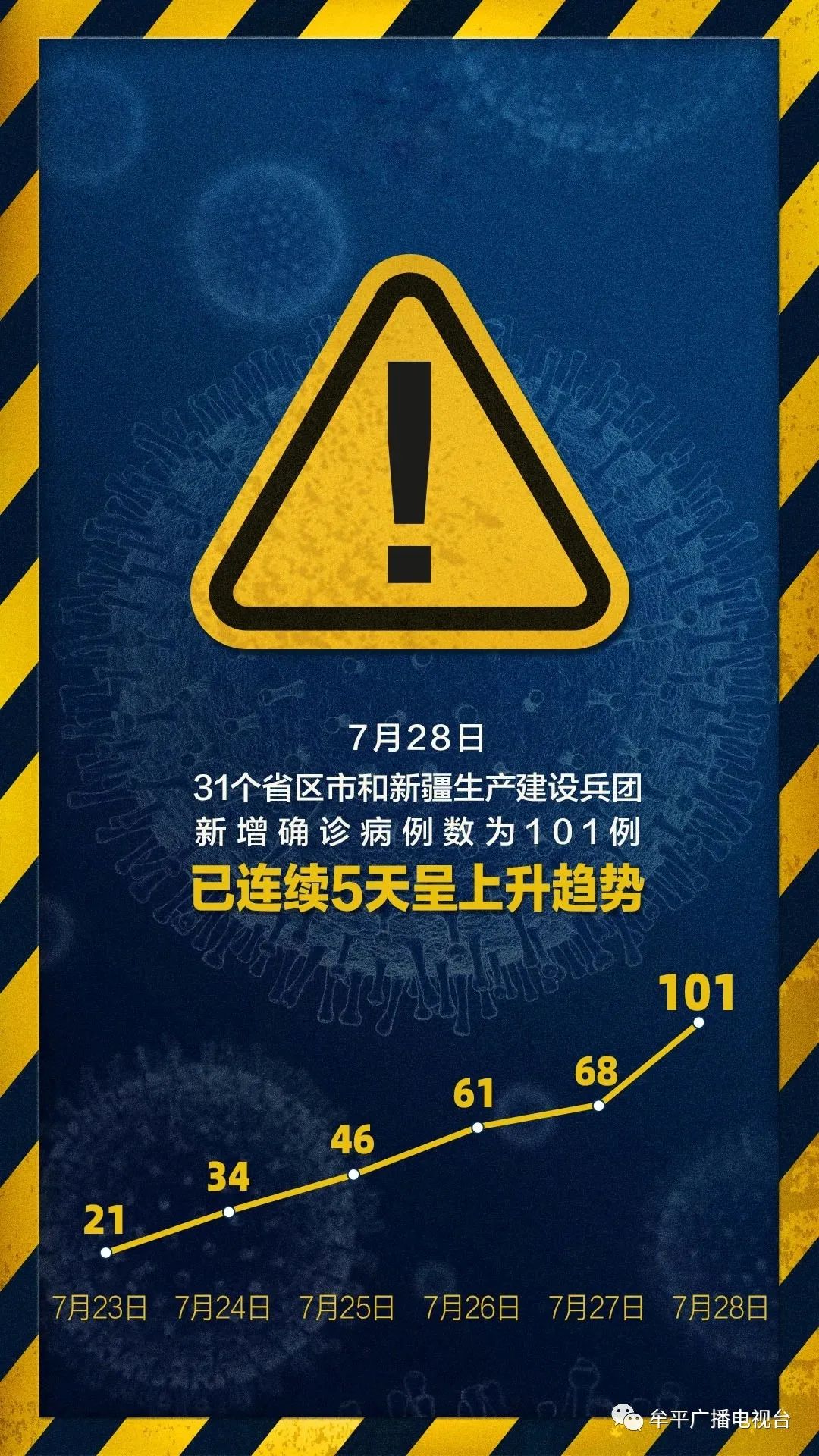 全宇宙只有不到1%的人點擊上方進入招遠信息港你真是個特別的人連日來,國內(nèi)疫情又有新變化。據(jù)國家衛(wèi)健委發(fā)布的最新消息:7月28日0—24時,31個?。ㄗ灾螀^(qū)、直轄市)和新疆生產(chǎn)建設(shè)兵團報告新增確診病例1