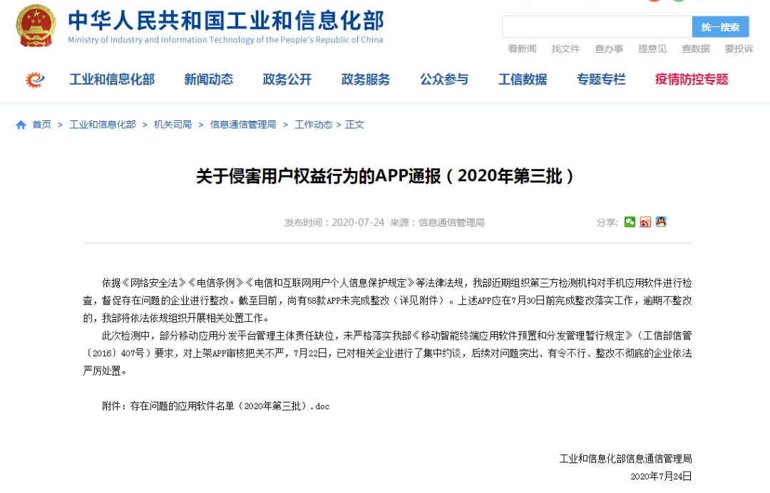 全宇宙只有不到1%的人點擊上方進入招遠信息港你真是個特別的人近日,工業(yè)和信息化部通報了2020年第三批侵害用戶權(quán)益的APP名單,共有58款應(yīng)用軟件在列。被通報的APP所涉問題主要有:賬號注銷難、私自或