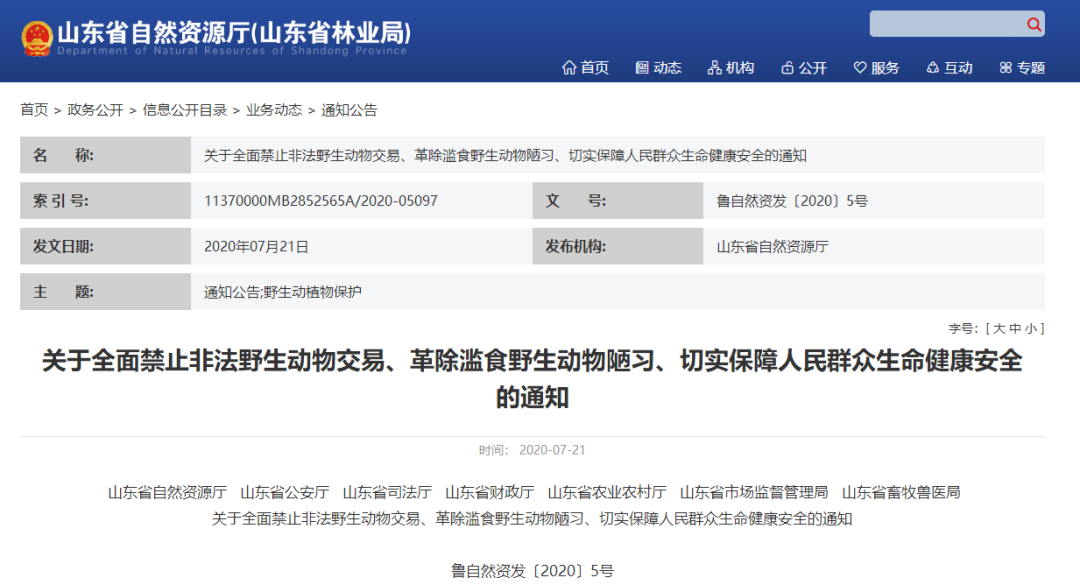 全宇宙只有不到1%的人點(diǎn)擊上方進(jìn)入招遠(yuǎn)信息港你真是個(gè)特別的人全面禁止非法野生動(dòng)物交易革除濫食野生動(dòng)物陋習(xí)切實(shí)保障人民群眾生命健康安全7月21日山東省下發(fā)重要通知↓↓山東省自然資源廳山東省公安廳山東省司