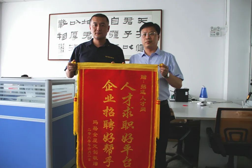 全宇宙只有不到1%的人點擊上方進入招遠人才網(wǎng)你真是個特別的人▼6月9日,招遠居然之家瑪格全屋定制王總專程來到招遠人才網(wǎng)(www.zyrencai.cn),送來一面繡著“企業(yè)招聘好幫手,人才求職好平臺”