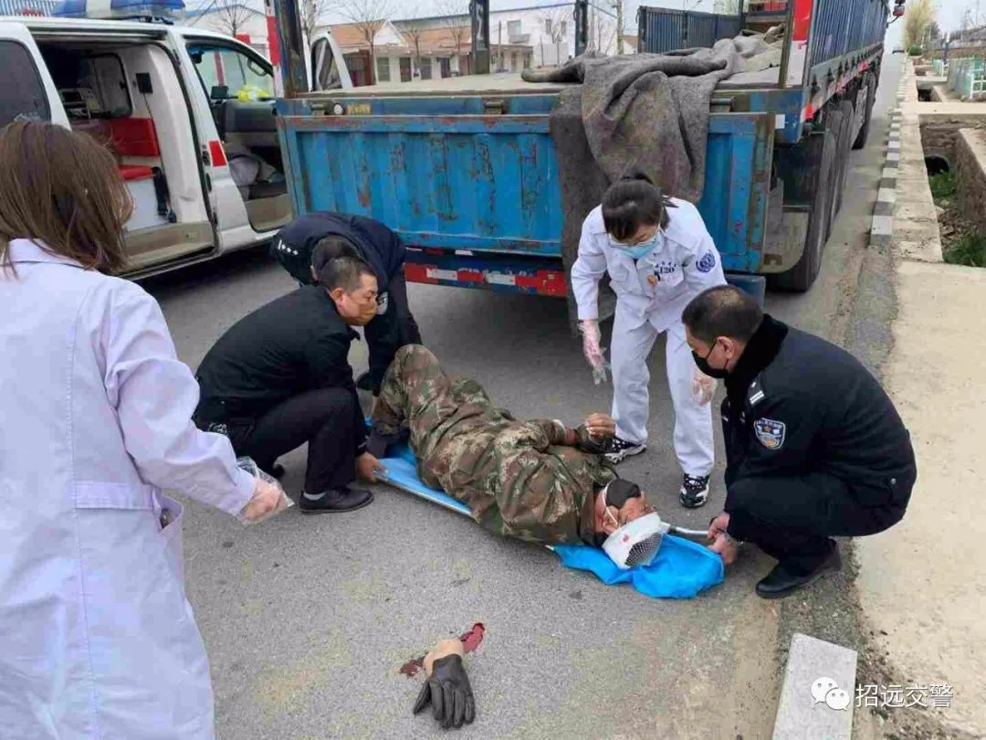 近日,招遠(yuǎn)交警大隊(duì)霞?jí)]檢查站民警在轄區(qū)開展日常巡邏,駕駛警車巡邏至S213南泊子金城花生門口時(shí),發(fā)現(xiàn)一人躺在車旁,見(jiàn)此情況民警立即停車打開執(zhí)法記錄儀并上前查看情況:該人躺在地上,頭部血流不止,身上多處